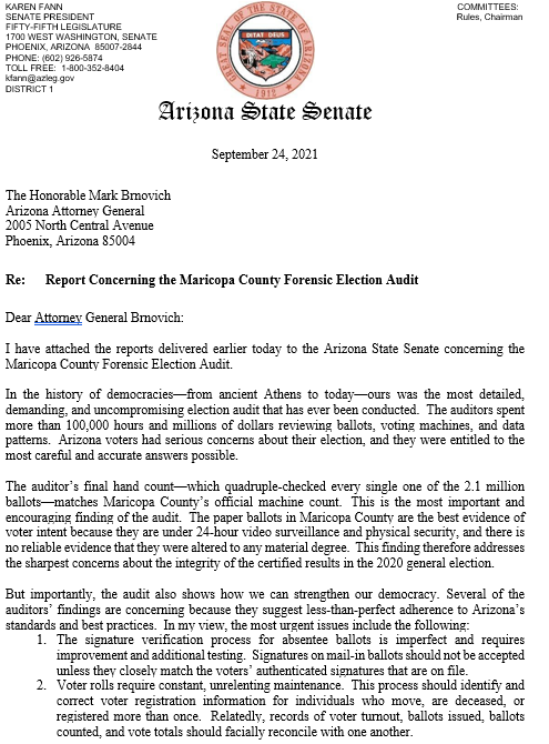 Arizona Senate President Karen Fann on Wednesday directed the CEO of Florida-based Cyber Ninjas to turn over all communications related to the ongoing audit of the Maricopa County election. A Republican-led audit of the 2020 election in Arizonas largest county found that President Biden actually won by a larger margin than the countys official results show. As Trumps claims about reinstatement show the Arizona audit is the bleeding edge of Republican efforts to cast doubt on the American system of.