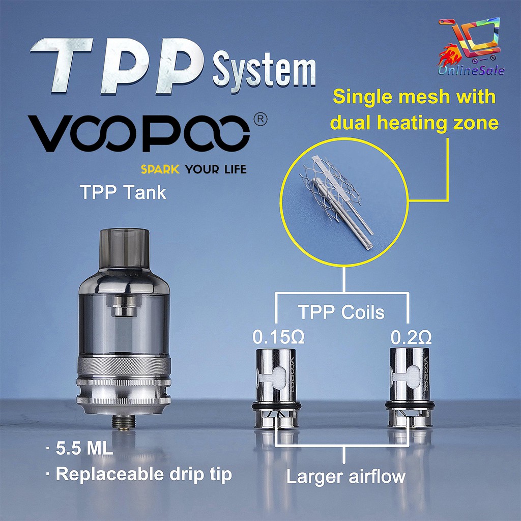 VOOPOO TPP Empty Pod Cartridge TPP coils sold separately. VOOPOO TPP Pod Tank gives Pod or Tank new meaning and is a versatile adaptable pod tank with a detachable threaded 510 Connector TPP Pod Tank uses the proprietary TPP technology which is specially designed for big clouds. Wide bore Stainless steel knurled Gear Goon 528 810 drip tip for all 810 tanks GeekVape Zeus X Mesh THC Tauren ONE Vandy Vape kylin M QP Fatality M25.